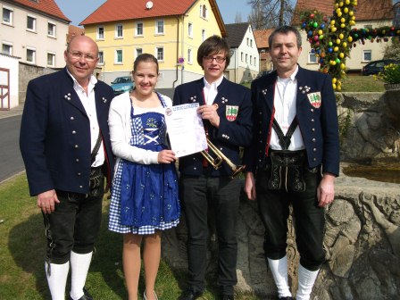 Von Links, Frau Renate Feuerbach(Nordbayerischer Musikbund), Florian Dietz(Tuba), Gebhard Karch(1 Vorstand), Eduard Marpoder(Dirigent), David Stephan(Querflöte)