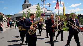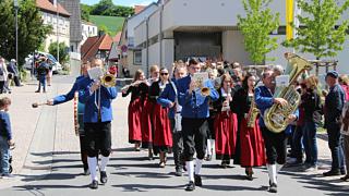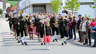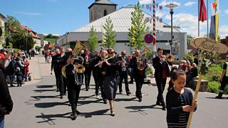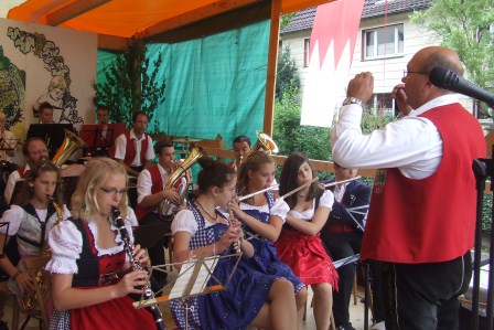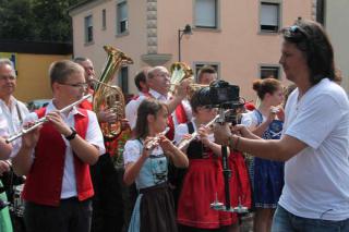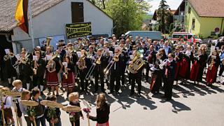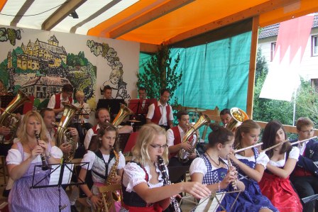 Am Festplatz in der Ludwigstraße können die Besucher den Klangkörper von über 120 Musiker aus der Großgemeinde erleben, die in einem Gemeinschaftschor ihr Können darbieten.