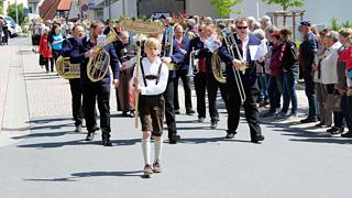 Am Sonntag beginnt das Fest in der Kirche um 9:30 Uhr mit dem Festgottesdienst, zu dem die Blaskapelle Mainberg die Schubert Messe spielt.
