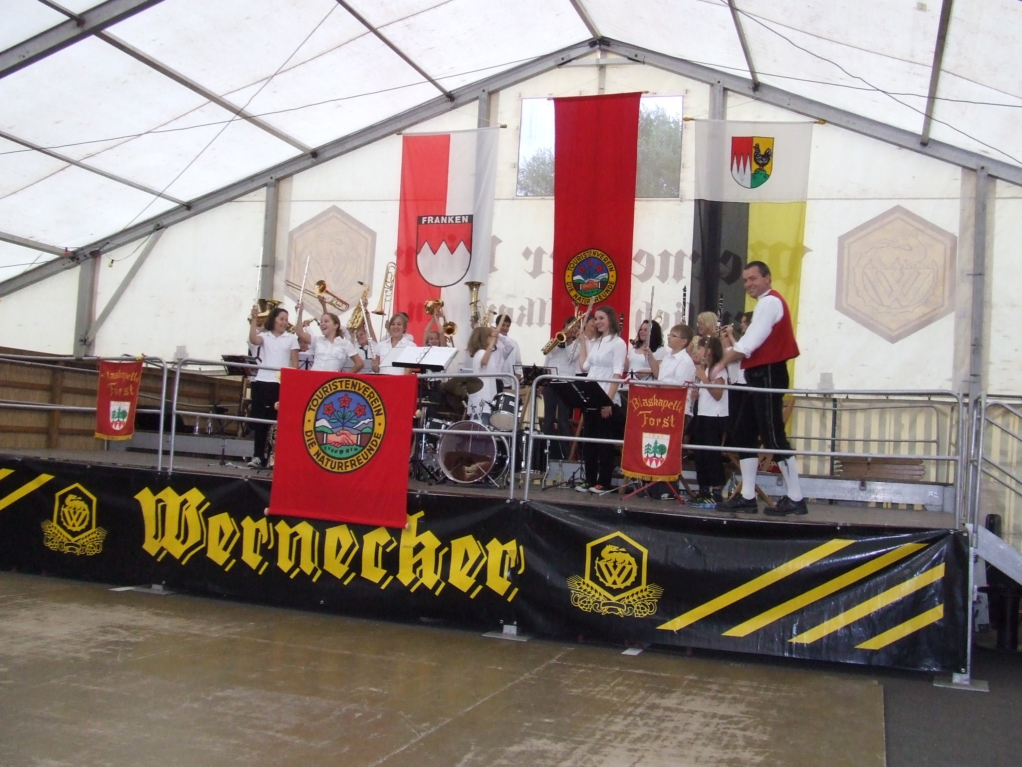 Blaskapelle Forst 1949 Ein Dankeschön allen Gästen und Helfern. Das Bläsertreffen und Oberlandfest in der Kulisse des Altdorfes war wieder einmaldie gelungene Attraktion, dank des Zuspruchs bei allen Hofbesitzern, Anliegern und der Bevölkerung von Forst.Das Fest wurde zum Anziehungspunkt für die ganze Region. Durch die Verbindung mit dem Oberlandfest beehrten uns Gäste aus dem ganzen Landkreis und darüber hinaus. Mit dem Festgottesdienst eröffnete Herr Pfarrer Thomas Amrhen das Bläsertreffen und das Oberlandfest. Anschießend folgte die Einweihung des Verbindungsweges Forst nach Gädheim. Mit der Festrede unseres Schirmherrn Landrat Harald Leitherer und dem 1. Bürgermeister Kilian Hartmann wurde beim Gemeinschaftschor der Blaskapellen der Großgemeinde Schonungen in Forst der Höhepunkt des Festes gefeiert. Wir danken an dieser Stelle allen Beteiligten, die zu dem Gelingen des Festes beigetragen haben. Insbesondere für die Bereitstellung der Höfe und die Anschlussmöglichkeit für die Strom- und Wasserversorgung. Wir danken den zahlreichen Bäckerinnen für die leckeren Kuchenspenden, sowie den Helfern in den einzelnen Ständen und den Helfern, die tatkräftig beim Auf- und Abbau halfen.Ein großes Fest geht nur gemeinsam. Deshalb möchten wir uns bei allen Ortsvereinen und Gruppen für die individuelle Unterstützung recht herzlich bedanken.Ein Dankeschön ergeht auch an die Gemeinde Schonungen für die Organisation mit ihrem Bauhof, damit die beiden Feste miteinander veranstaltet werden konnten.Die Teilnahme der vielen Ehrengäste mit den Musikkapellen und Tanzgruppen aus der Großgemeinde und die Oldtimer Schlepper haben dem Fest eine besondere Note verliehen. Großer Dank allen Standbetreibern aus nah und fern für die Bereicherung unseres Festes. Hier konnten sie ihre handwerklichen Geschicke unter Beweis stellen.Ein Dankeschön für die Beteiligung des Forster Montessori Kindergartens mit dem Kinderschminken und dem Flohmarkt für alle Kinder und das Mitwirken beim Festzug des TSV Forst.Allen Gästen und Besuchern ein Dankeschön für Ihr Kommen. Ein Vergeltsgott für die Unterstützung aller Freunde und Gönner der Forster Blasmusik. Mit musikalischem Gruß Gebhard Karch 1. Vorstand